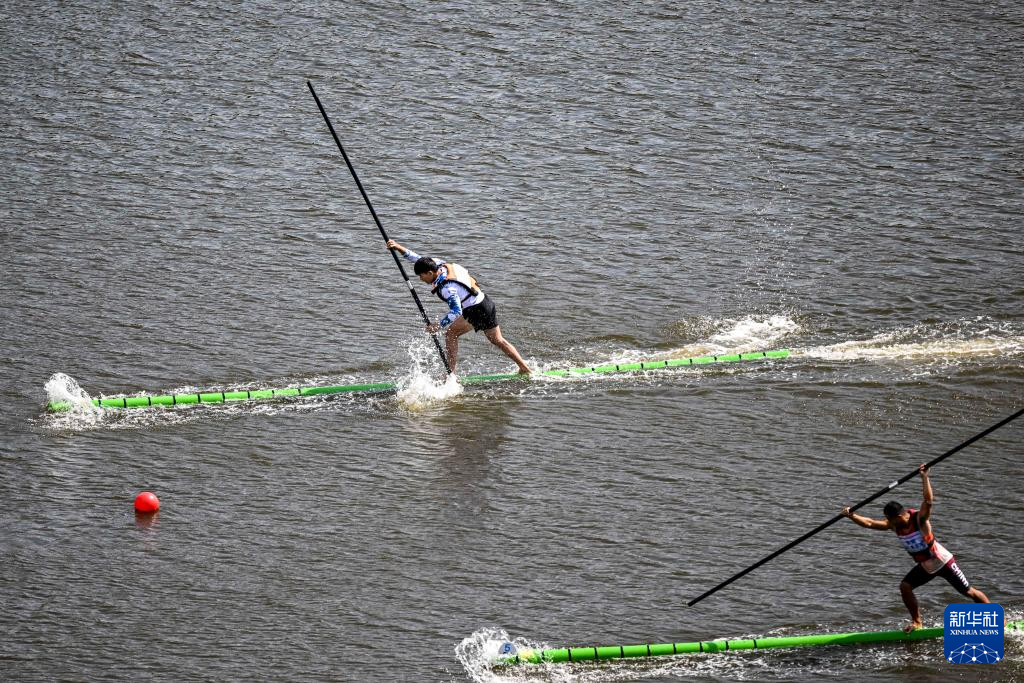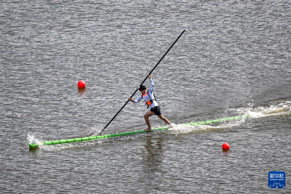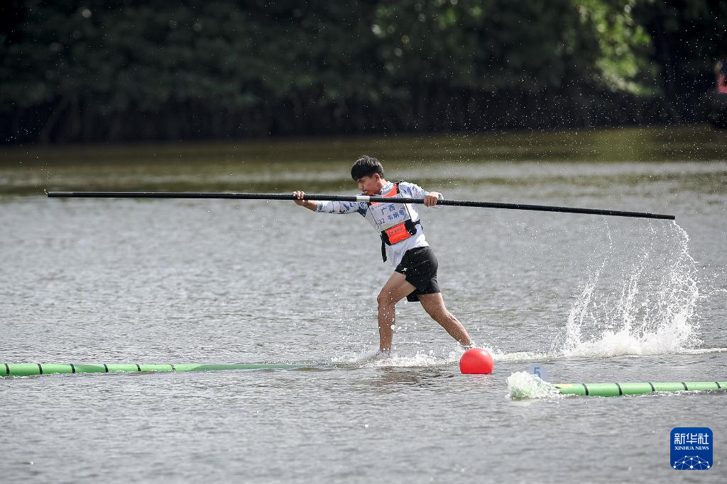 當(dāng)日,第十二屆全國少數(shù)民族傳統(tǒng)體育運動會獨竹漂男子組60米直道賽在海南省三亞市舉行。