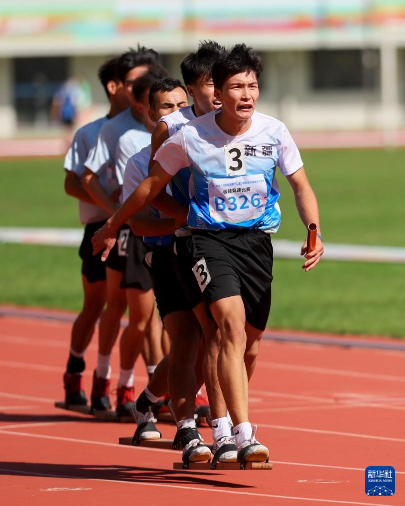 當(dāng)日,第十二屆全國少數(shù)民族傳統(tǒng)體育運動會板鞋競速男子2x100米接力復(fù)賽在海南省三亞市舉行。