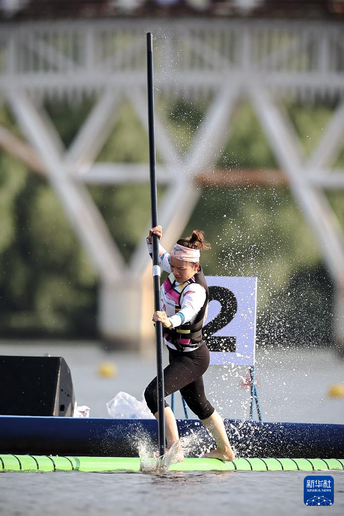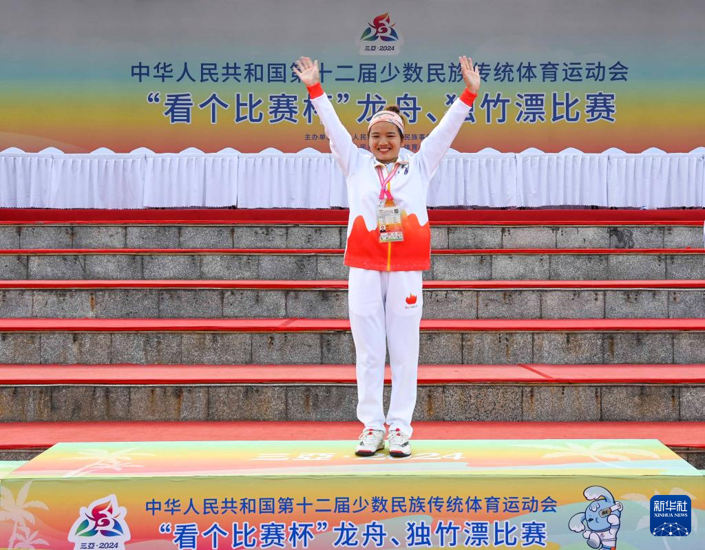 當(dāng)日,第十二屆全國少數(shù)民族傳統(tǒng)體育運動會女子組(獨竹漂)100米直道賽在海南省三亞市舉行。