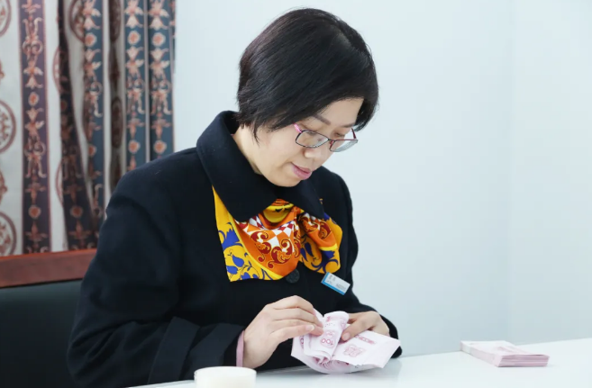 圖為雷燕在展示多指多張手動點鈔法。圖片來源于:微山南