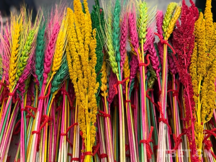圖為藏年花,藏語(yǔ)稱為“羅薩梅朵”,是用麥穗染成藍(lán)、黃、綠、紅等顏色,寓意豐收美滿。