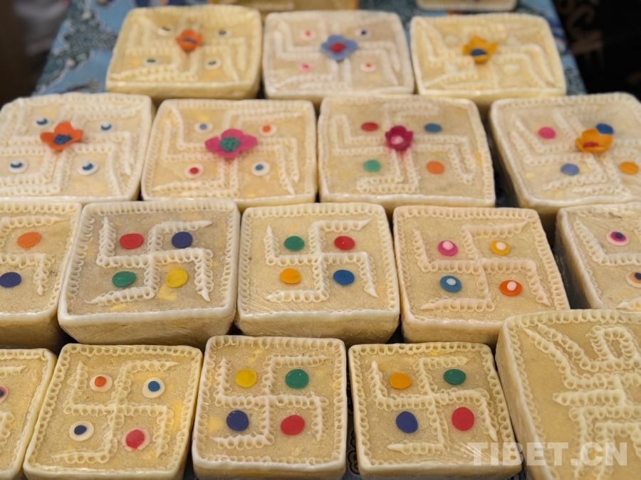 圖為藏式糕點(diǎn),藏語(yǔ)稱為“推”,象征吉祥如意。