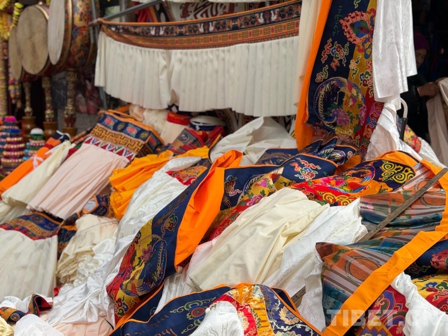 圖為香布,是懸掛于藏式建筑的門窗上部,通常用五彩綢布縫制而成,主體顏色為白色,再配上紅、藍(lán)、黃等顏色的邊沿。“香布”一年一換,祈求新意和吉祥,也標(biāo)志著新年的到來(lái)。