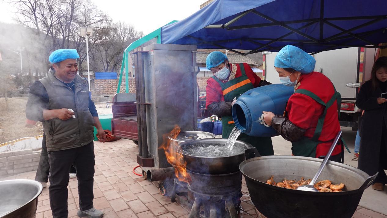 早上八點,天剛麻麻亮,食材加工間里已經(jīng)熱氣騰騰。五個幫廚,加上鞏耀軍兩口子,七個人的團隊到齊了。不用吩咐,打水的、生火的、擦灶臺的,各干各的,利利索索。鞏耀軍說,大家伙跟著他這么多年都習(xí)慣了,該干什么都知道,不用他吩咐。