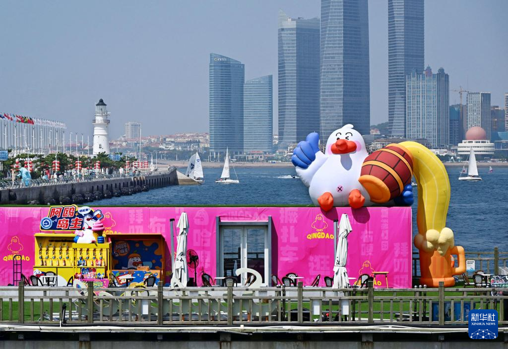 人們在青島市南區(qū)棧橋景區(qū)游玩(8月17日攝)。