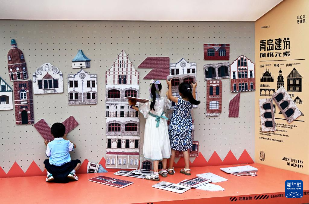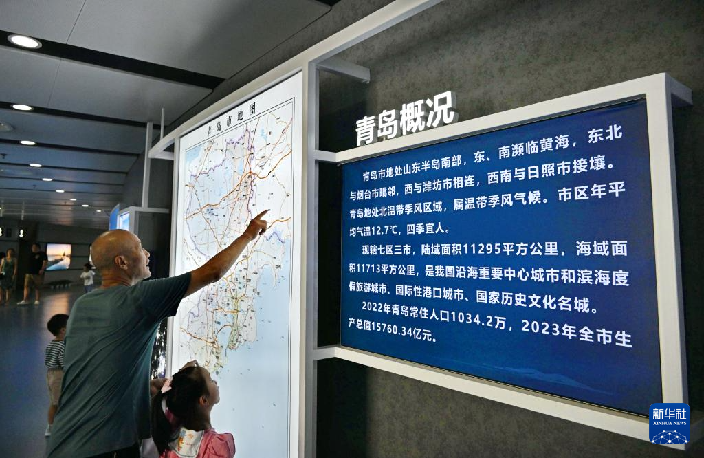 人們在青島城市展覽館內(nèi)參觀(8月17日攝,無人機照片)。