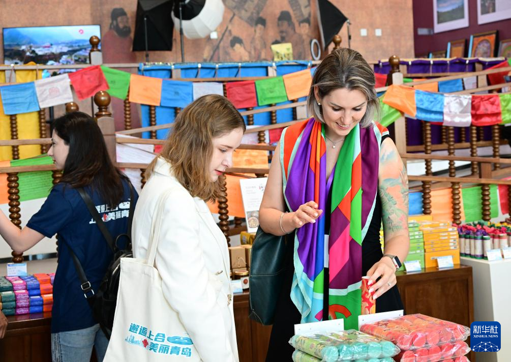 參加2024“邂逅上合·美麗青島”來華留學(xué)生社會實踐活動的留學(xué)生在位于青島膠州的上合之珠國際博覽中心參觀(6月25日攝)。