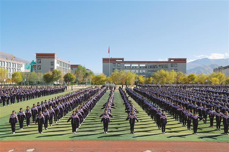 圖為拉薩實驗中學的學生在做課間操。 (圖片由江蘇援藏指揮部提供)