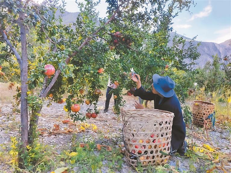 昌西村村民在采摘自家種植的石榴。記者 王珊 謝筱純 攝