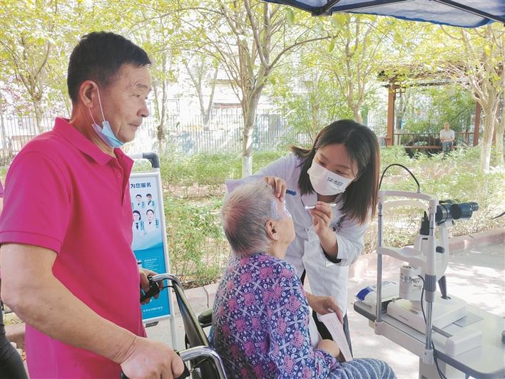 8月8日,“情暖兵團·守護光明”公益項目醫(yī)療服務(wù)隊在十一師開展眼疾篩查活動。圖為醫(yī)療服務(wù)隊隊員為老人做眼部檢查。 兵團日報全媒體記者 陳瓊 攝