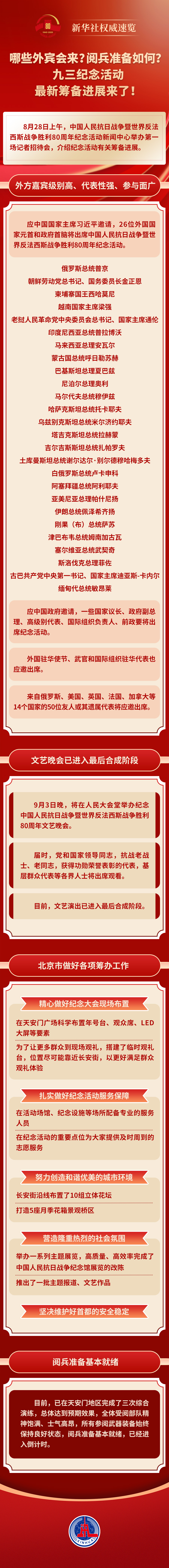 哪些外賓會來?閱兵準備如何?九三紀念活動最新籌備進展來了!