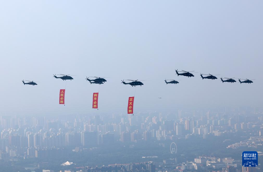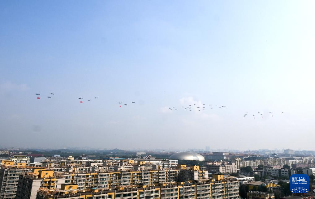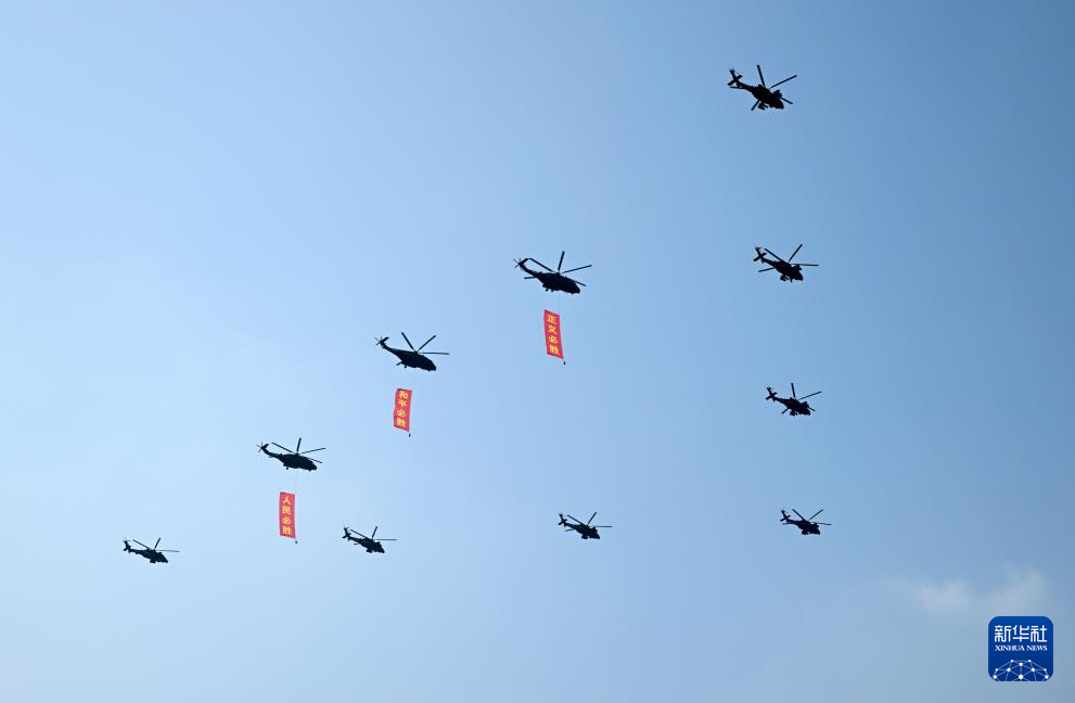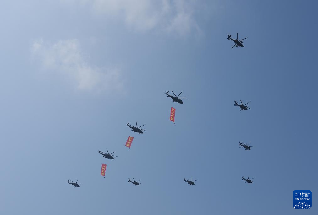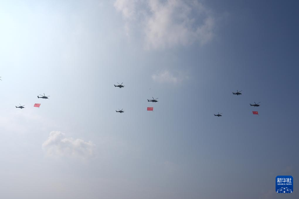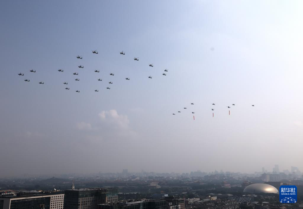 9月3日,紀(jì)念中國(guó)人民抗日戰(zhàn)爭(zhēng)暨世界反法西斯戰(zhàn)爭(zhēng)勝利80周年大會(huì)在北京隆重舉行。這是空中護(hù)旗梯隊(duì)。