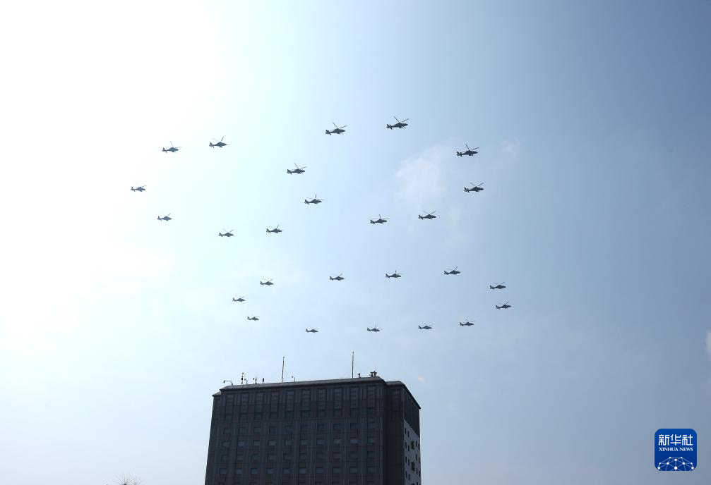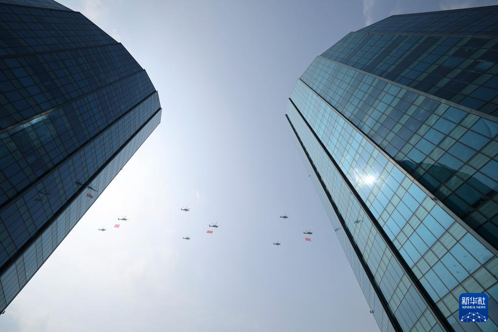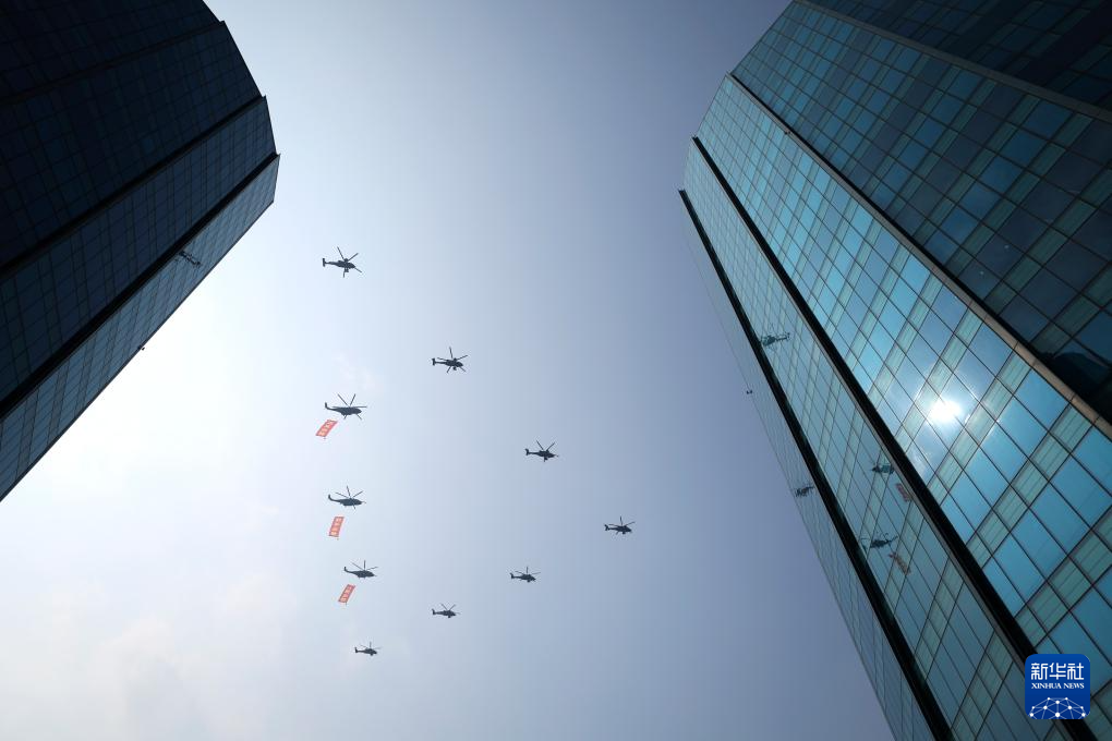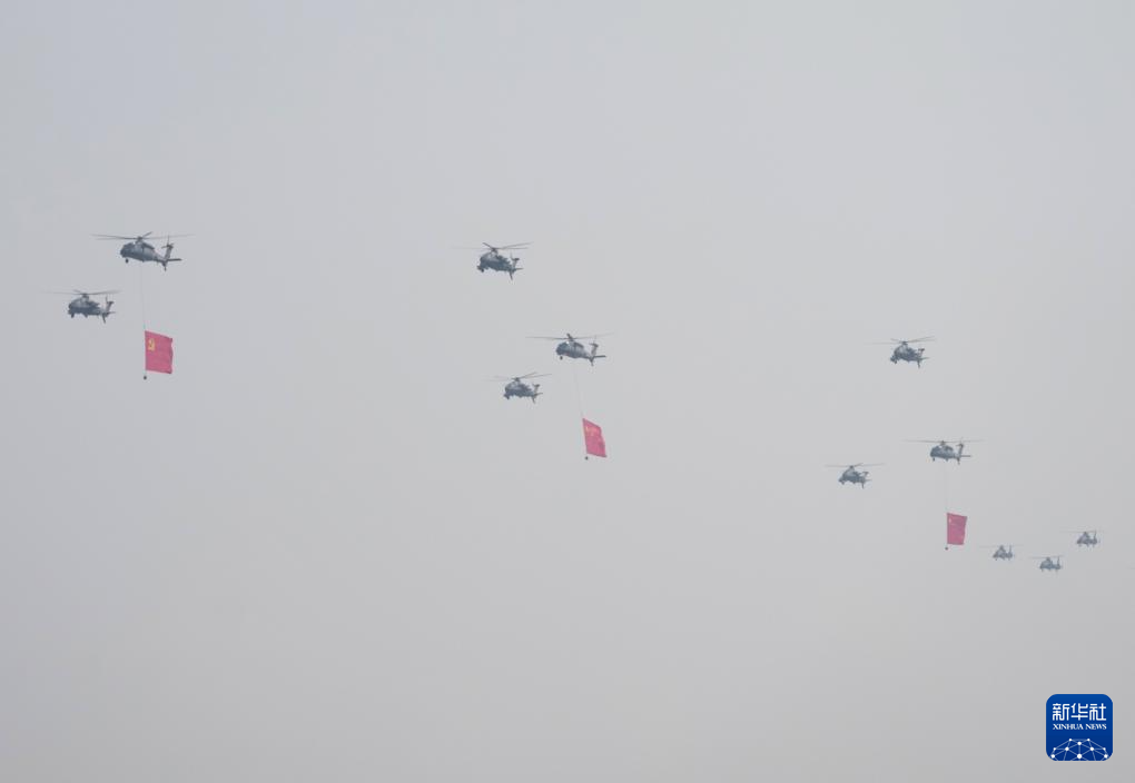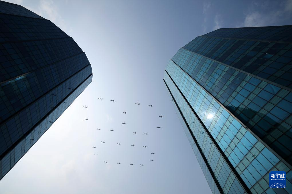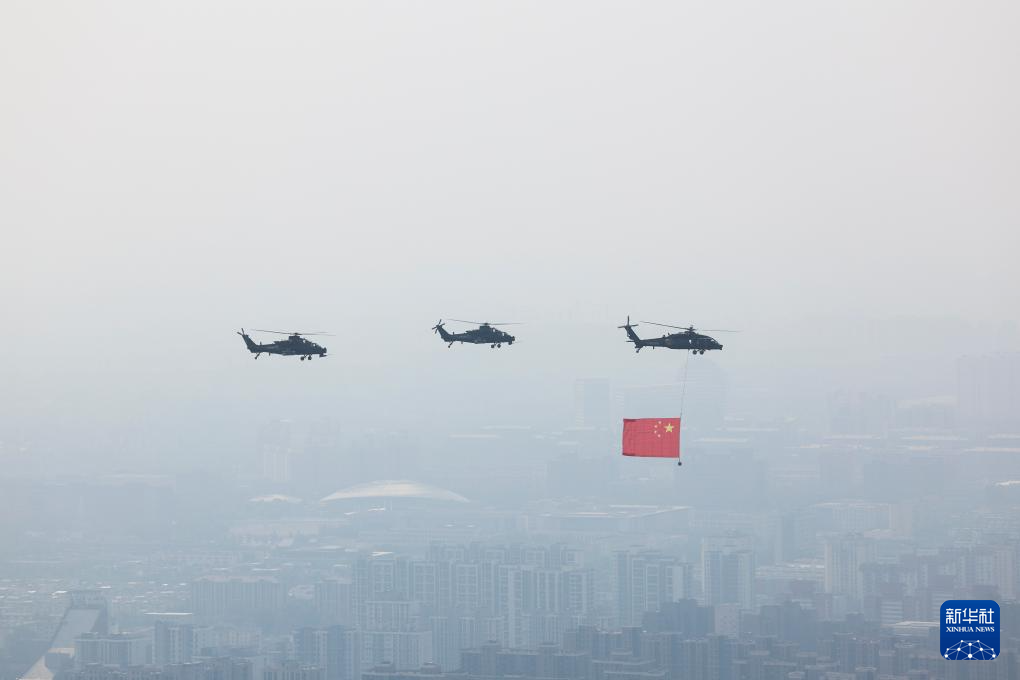 9月3日,紀(jì)念中國(guó)人民抗日戰(zhàn)爭(zhēng)暨世界反法西斯戰(zhàn)爭(zhēng)勝利80周年大會(huì)在北京隆重舉行。這是空中護(hù)旗梯隊(duì)。