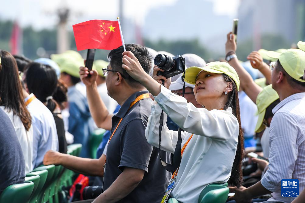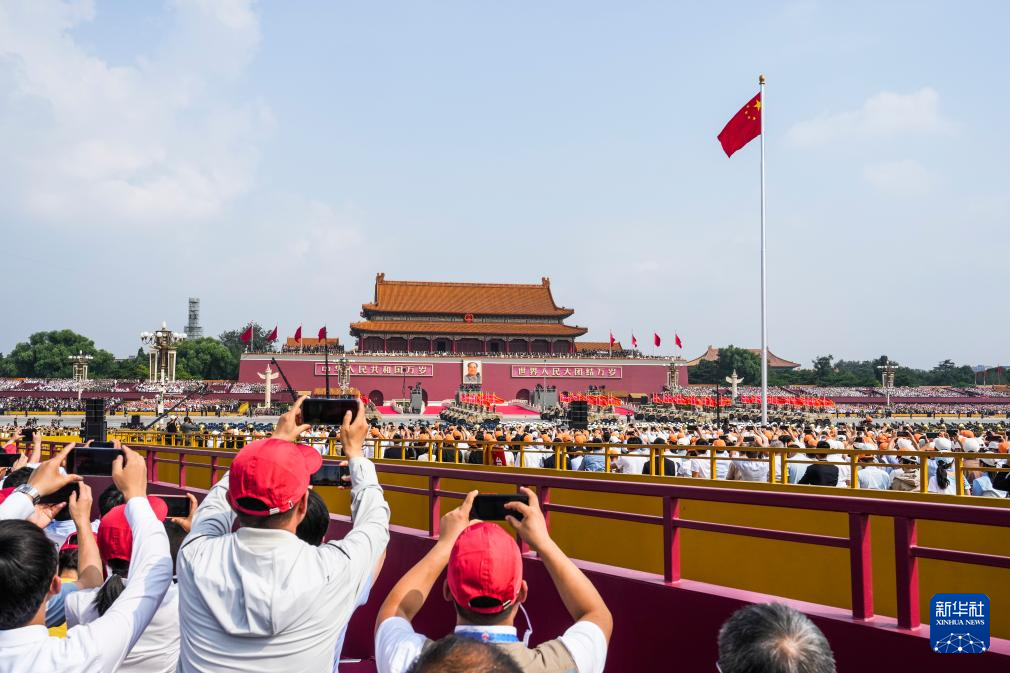 9月3日,紀(jì)念中國(guó)人民抗日戰(zhàn)爭(zhēng)暨世界反法西斯戰(zhàn)爭(zhēng)勝利80周年大會(huì)在北京隆重舉行。這是觀眾拍攝手中的國(guó)旗。