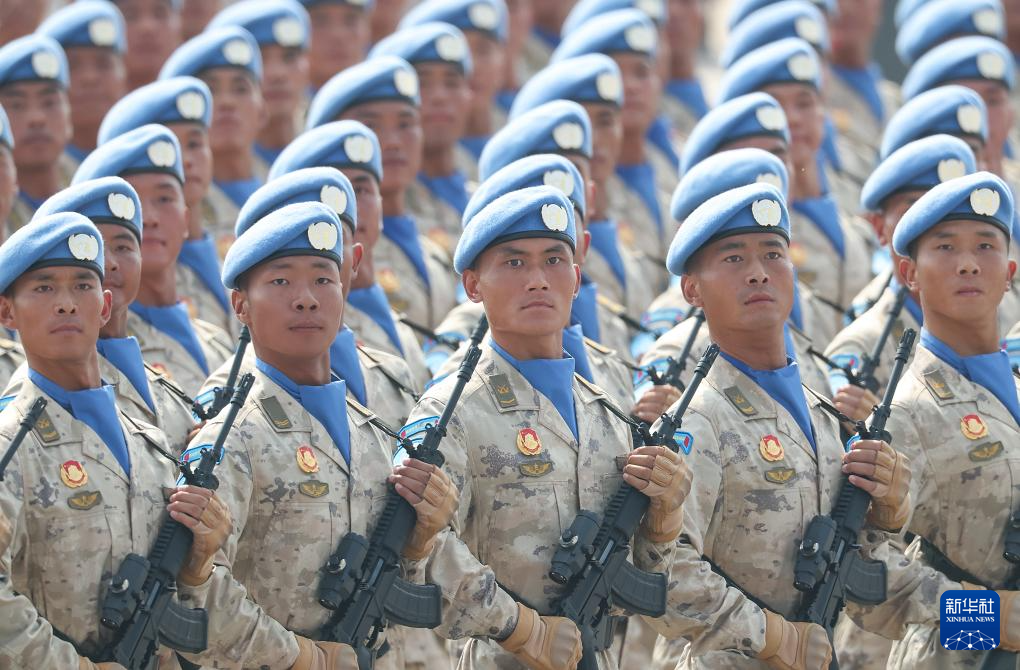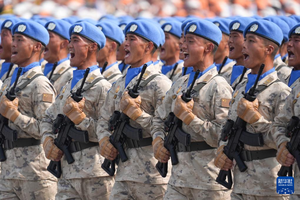 9月3日,紀(jì)念中國(guó)人民抗日戰(zhàn)爭(zhēng)暨世界反法西斯戰(zhàn)爭(zhēng)勝利80周年大會(huì)在北京隆重舉行。這是維和部隊(duì)方隊(duì)接受檢閱。