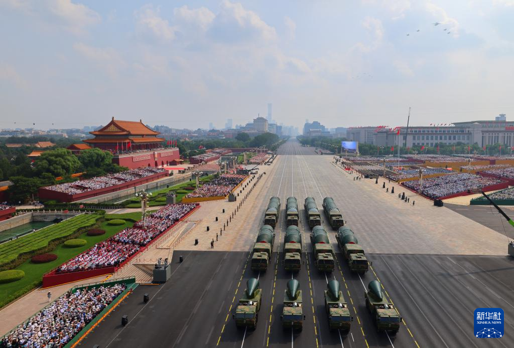9月3日,紀(jì)念中國(guó)人民抗日戰(zhàn)爭(zhēng)暨世界反法西斯戰(zhàn)爭(zhēng)勝利80周年大會(huì)在北京隆重舉行。這是核導(dǎo)彈第二方隊(duì)通過(guò)天安門廣場(chǎng)。
