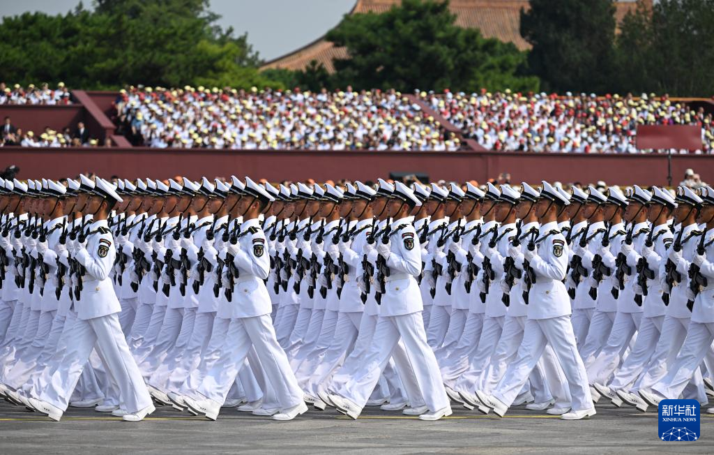9月3日,紀(jì)念中國(guó)人民抗日戰(zhàn)爭(zhēng)暨世界反法西斯戰(zhàn)爭(zhēng)勝利80周年大會(huì)在北京隆重舉行。這是海軍方隊(duì)接受檢閱。