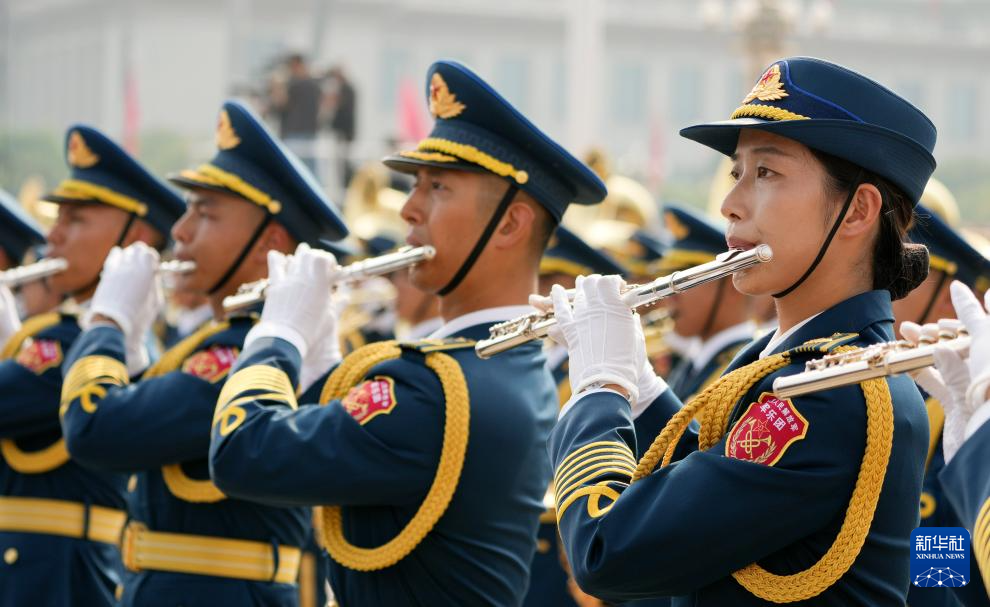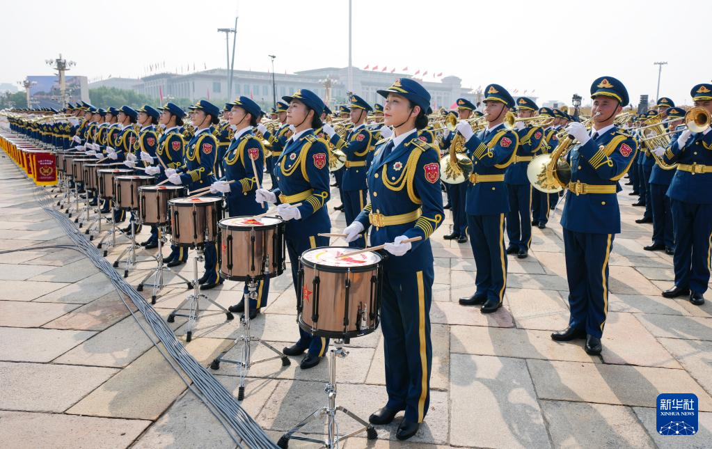 9月3日,紀(jì)念中國人民抗日戰(zhàn)爭暨世界反法西斯戰(zhàn)爭勝利80周年大會在北京隆重舉行。這是中國人民解放軍聯(lián)合軍樂團(tuán)在演奏。