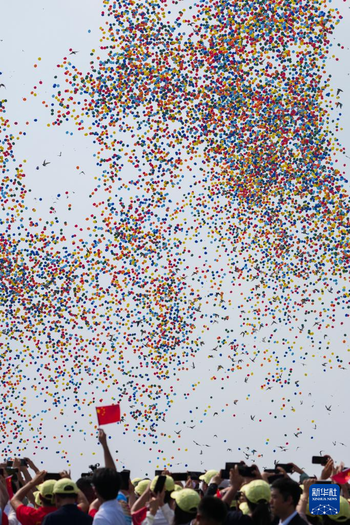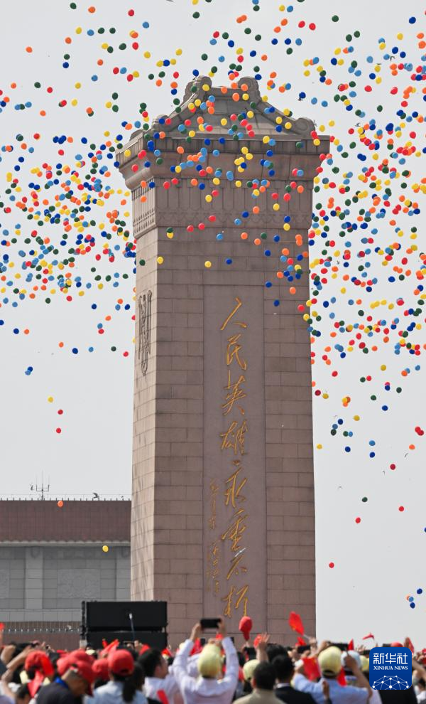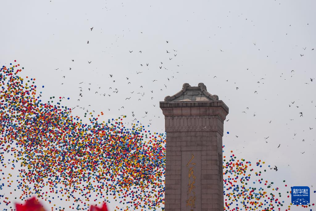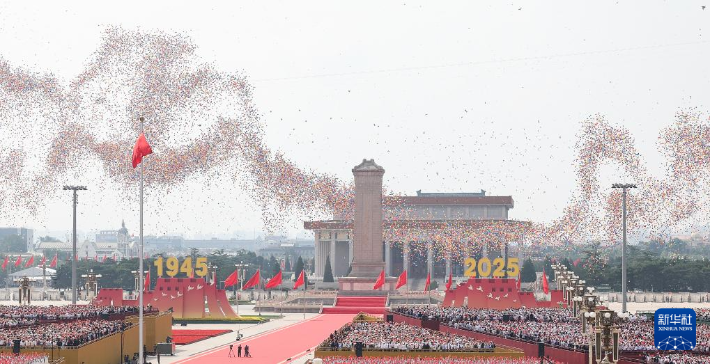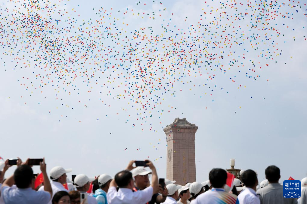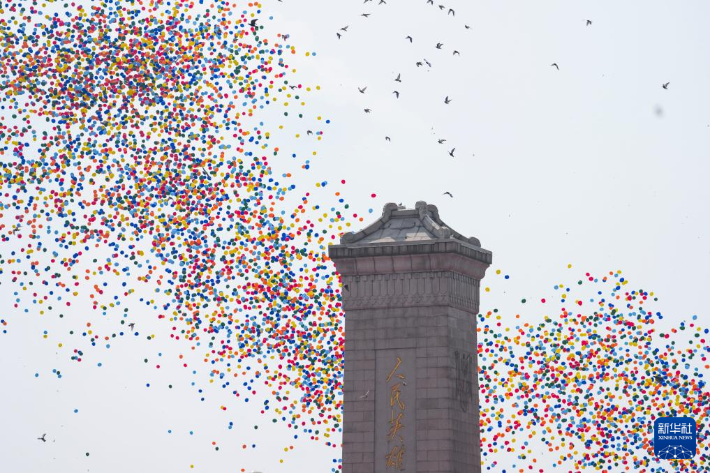 9月3日,紀(jì)念中國人民抗日戰(zhàn)爭暨世界反法西斯戰(zhàn)爭勝利80周年大會在北京隆重舉行。這是紀(jì)念大會現(xiàn)場放飛氣球。
