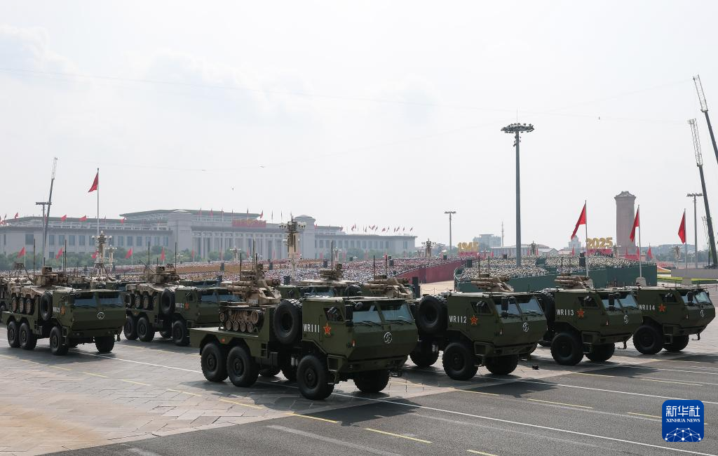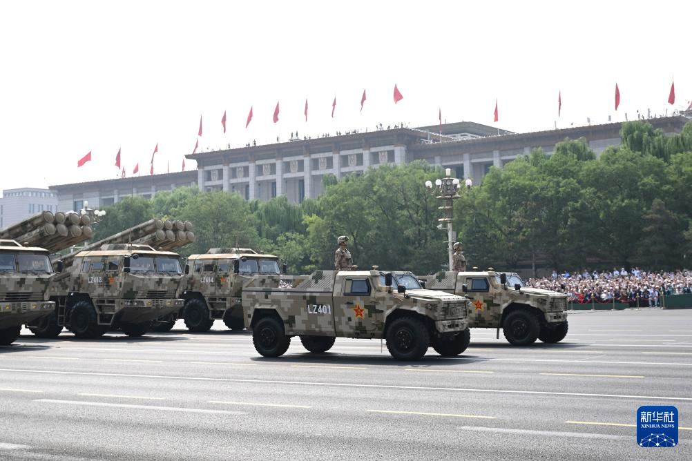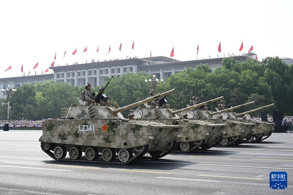 9月3日,紀(jì)念中國人民抗日戰(zhàn)爭暨世界反法西斯戰(zhàn)爭勝利80周年大會在北京隆重舉行。這是遠(yuǎn)程火炮方隊接受檢閱。