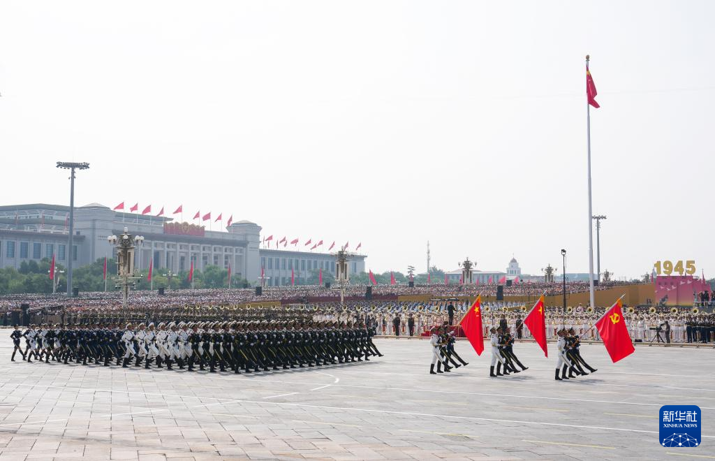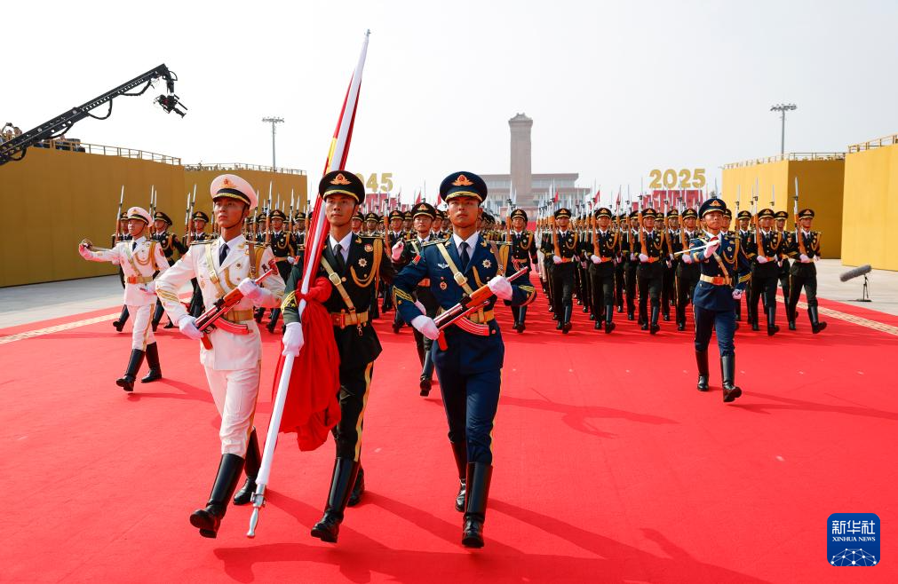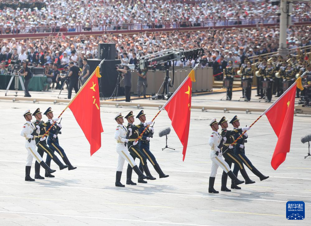 9月3日,紀(jì)念中國人民抗日戰(zhàn)爭暨世界反法西斯戰(zhàn)爭勝利80周年大會在北京隆重舉行。這是國旗護(hù)衛(wèi)隊在行進(jìn)中。