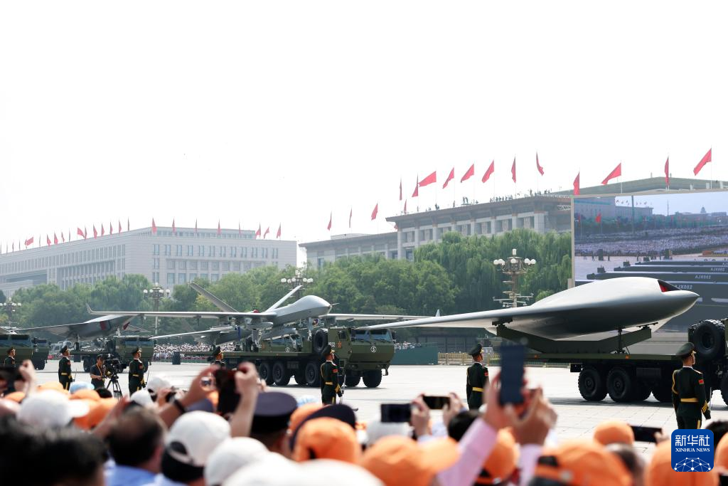 9月3日,紀(jì)念中國人民抗日戰(zhàn)爭暨世界反法西斯戰(zhàn)爭勝利80周年大會在北京隆重舉行。這是空中無人作戰(zhàn)方隊接受檢閱。