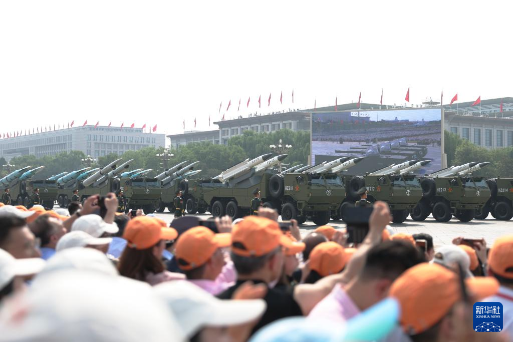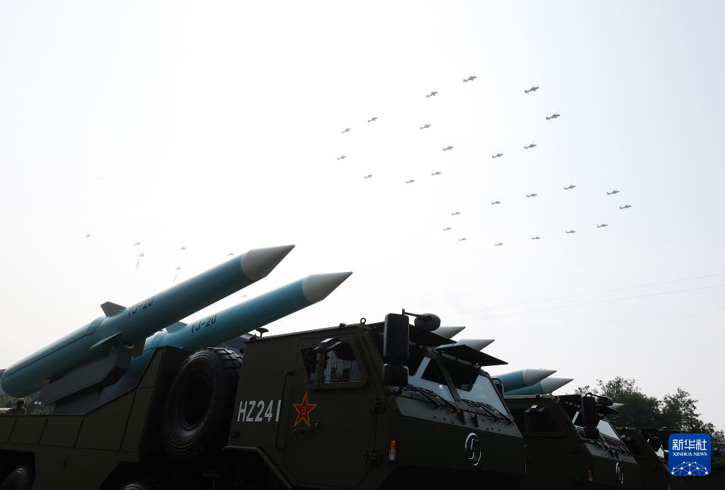 9月3日,紀(jì)念中國人民抗日戰(zhàn)爭暨世界反法西斯戰(zhàn)爭勝利80周年大會在北京隆重舉行。這是反艦導(dǎo)彈方隊接受檢閱。