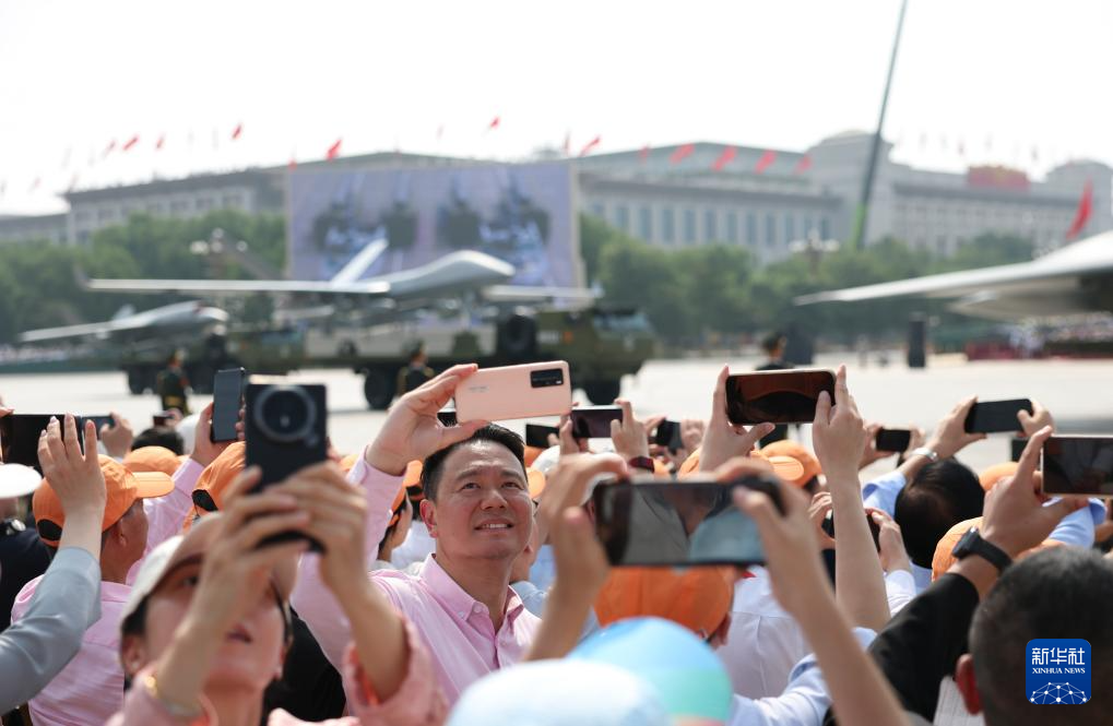 9月3日,紀(jì)念中國人民抗日戰(zhàn)爭暨世界反法西斯戰(zhàn)爭勝利80周年大會在北京隆重舉行。這是觀禮嘉賓在拍照。