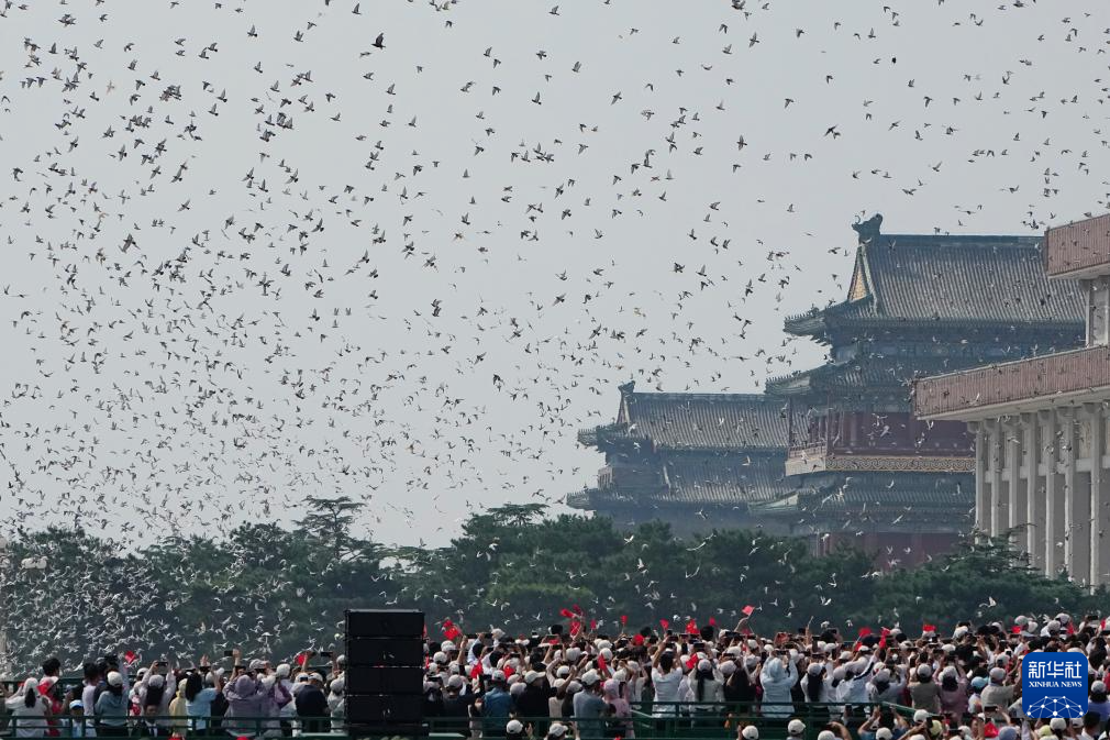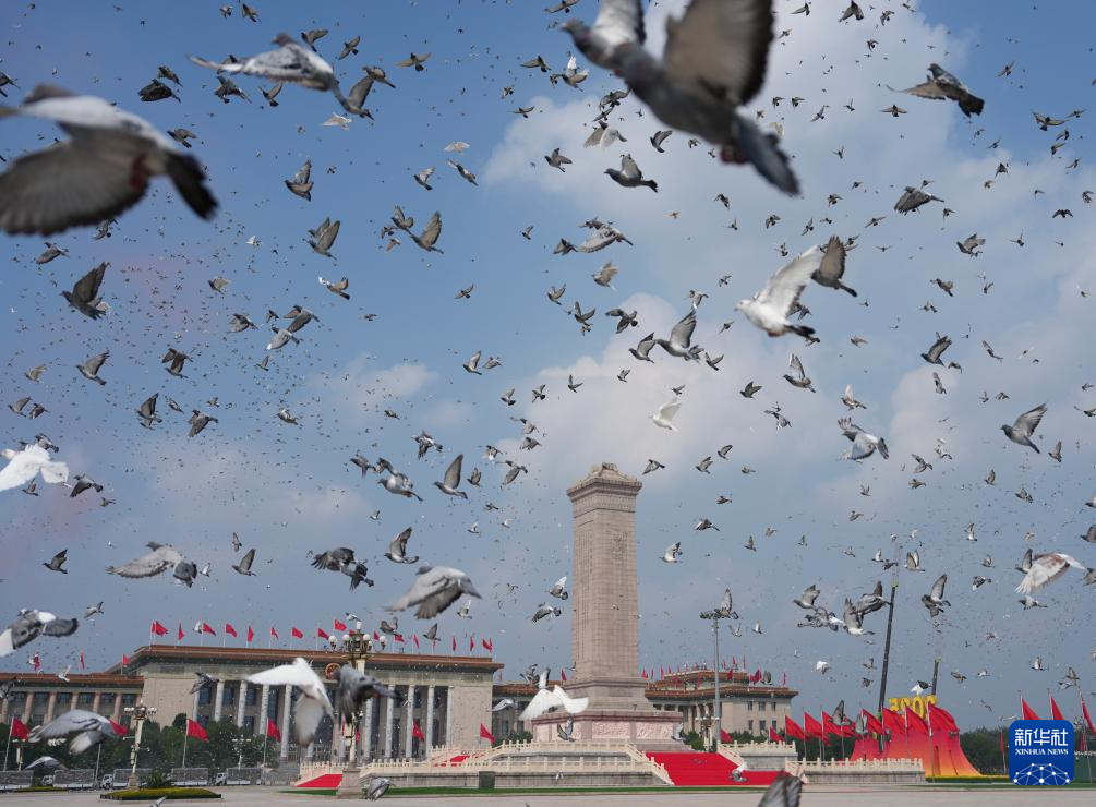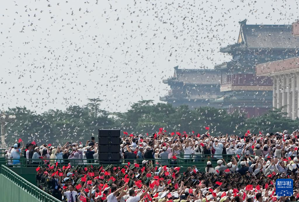9月3日,紀(jì)念中國人民抗日戰(zhàn)爭暨世界反法西斯戰(zhàn)爭勝利80周年大會在北京隆重舉行。這是紀(jì)念大會現(xiàn)場放飛鴿子。