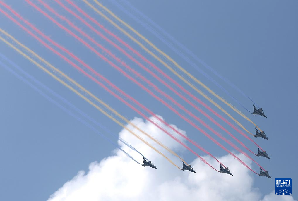 9月3日,紀(jì)念中國人民抗日戰(zhàn)爭暨世界反法西斯戰(zhàn)爭勝利80周年大會在北京隆重舉行。這是教練機(jī)梯隊。