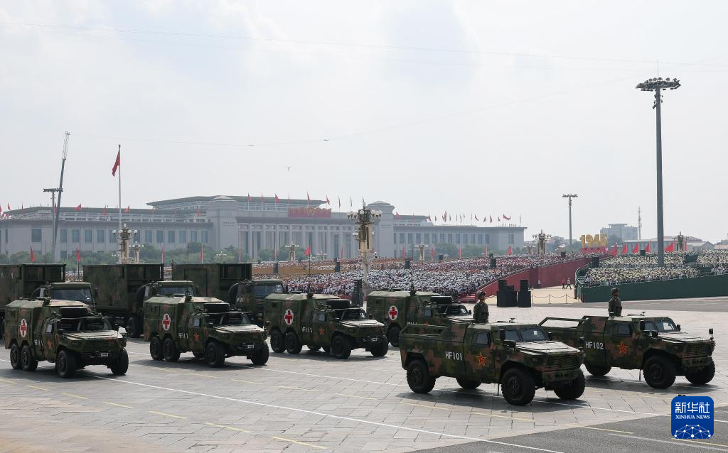 9月3日,紀(jì)念中國人民抗日戰(zhàn)爭暨世界反法西斯戰(zhàn)爭勝利80周年大會在北京隆重舉行。這是后勤保障方隊接受檢閱。