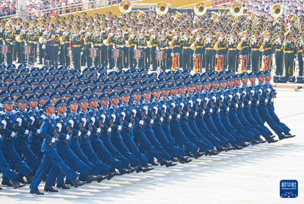 9月3日,紀(jì)念中國人民抗日戰(zhàn)爭暨世界反法西斯戰(zhàn)爭勝利80周年大會在北京隆重舉行。這是空軍方隊走過天安門廣場。