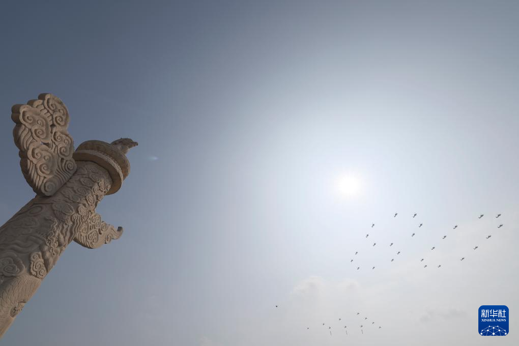 9月3日,紀(jì)念中國人民抗日戰(zhàn)爭暨世界反法西斯戰(zhàn)爭勝利80周年大會在北京隆重舉行。這是空中護(hù)旗梯隊飛過天安門廣場上空。