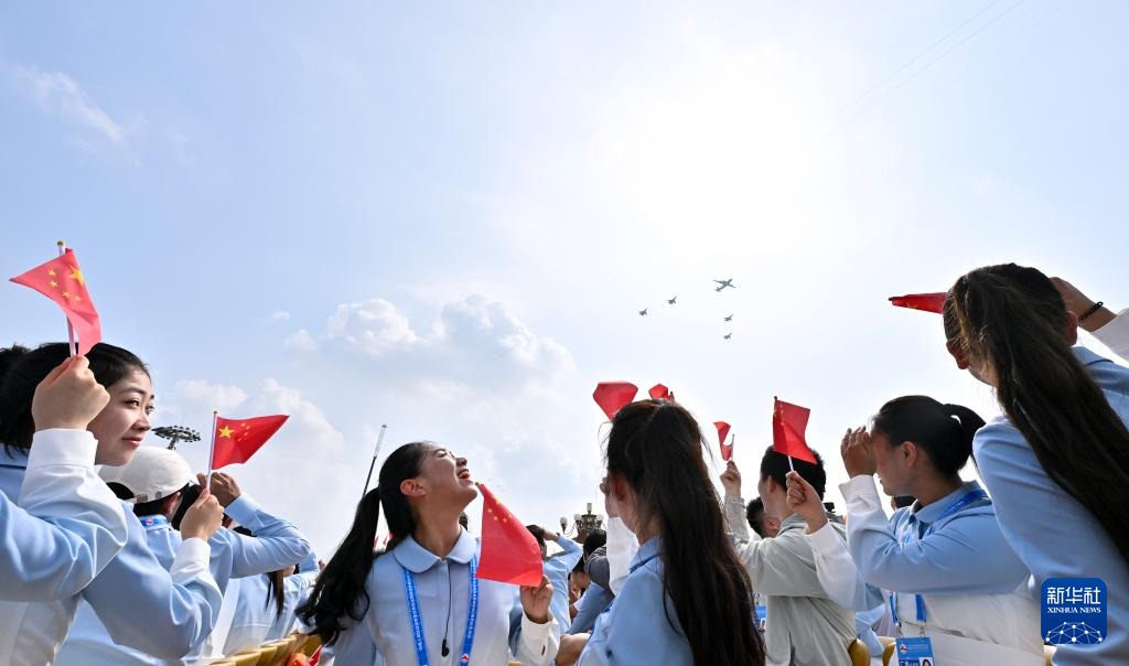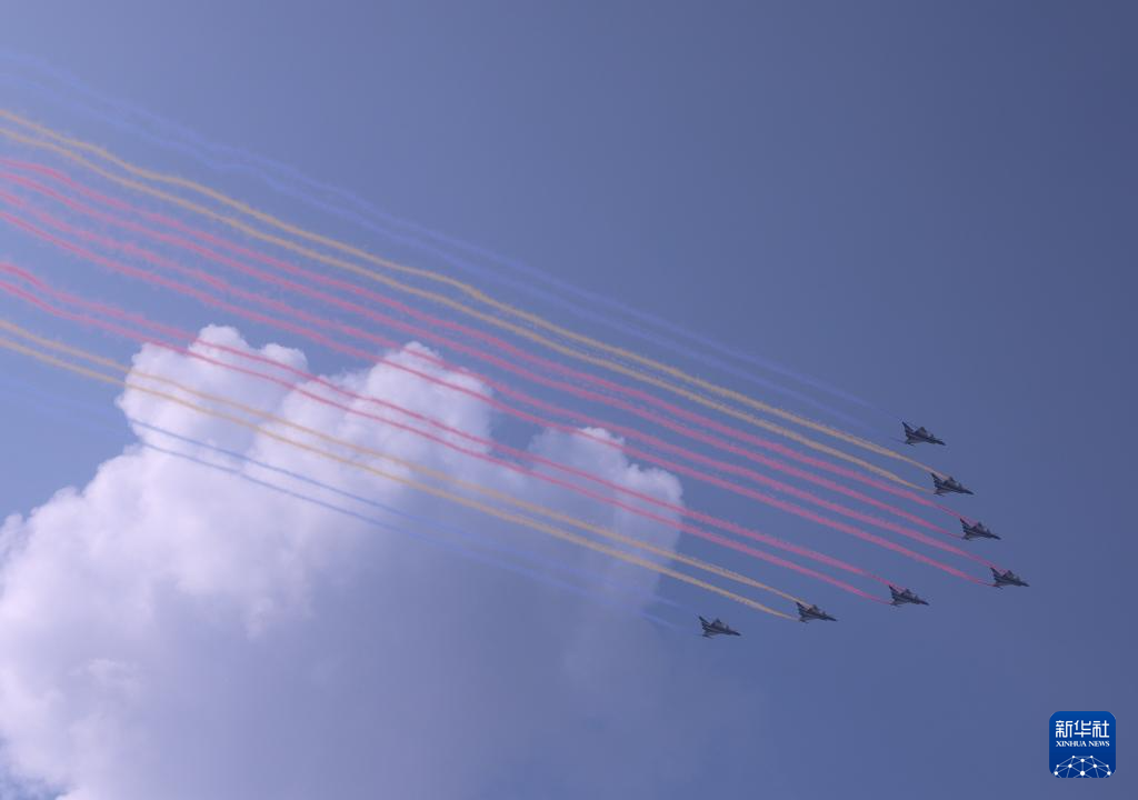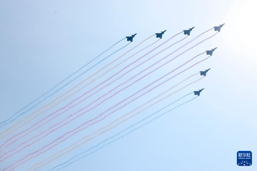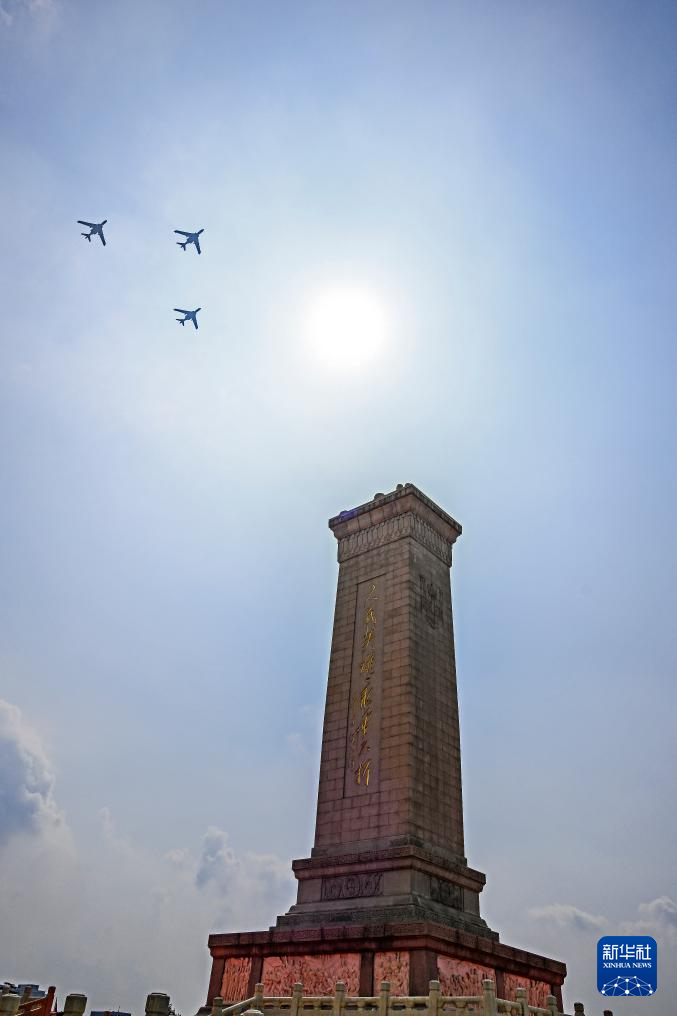 9月3日,紀(jì)念中國人民抗日戰(zhàn)爭暨世界反法西斯戰(zhàn)爭勝利80周年大會在北京隆重舉行。這是空中梯隊接受檢閱。