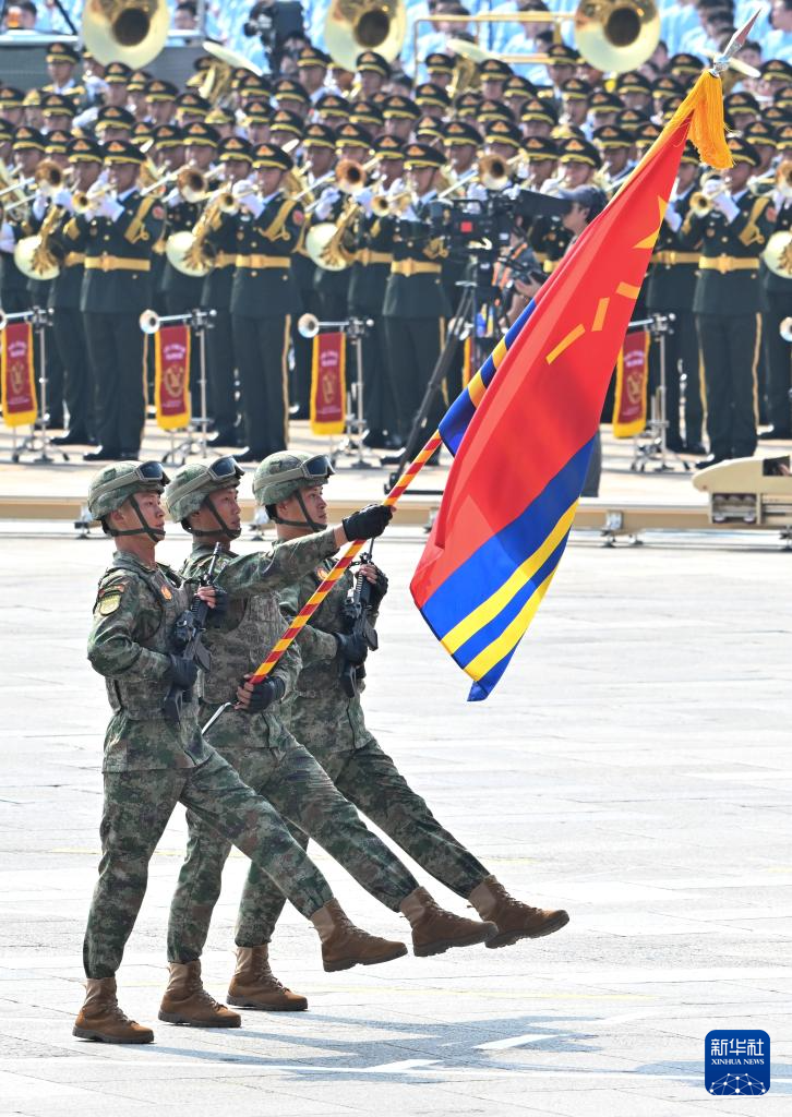 9月3日,紀(jì)念中國人民抗日戰(zhàn)爭暨世界反法西斯戰(zhàn)爭勝利80周年大會在北京隆重舉行。這是戰(zhàn)旗方隊接受檢閱。