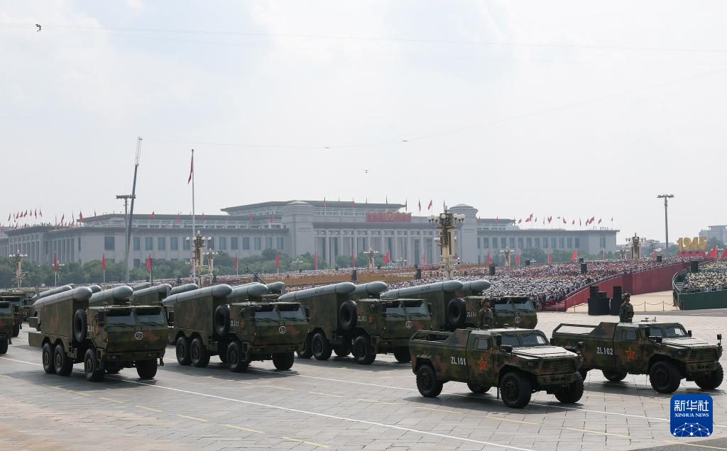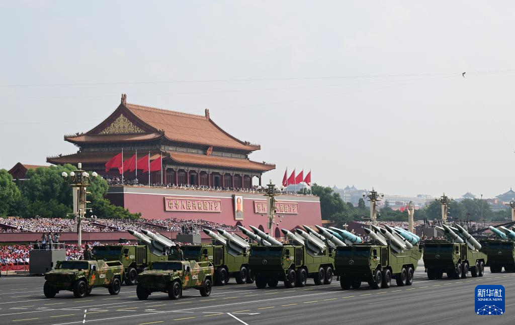 9月3日,紀(jì)念中國人民抗日戰(zhàn)爭暨世界反法西斯戰(zhàn)爭勝利80周年大會在北京隆重舉行。這是高超聲速導(dǎo)彈方隊接受檢閱。