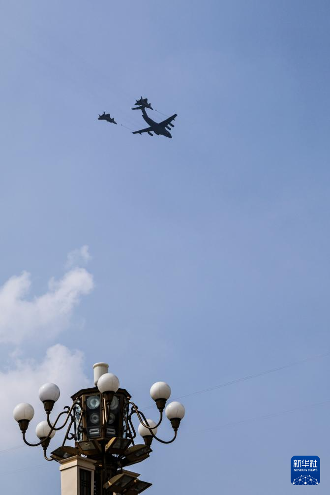 9月3日,紀(jì)念中國人民抗日戰(zhàn)爭暨世界反法西斯戰(zhàn)爭勝利80周年大會在北京隆重舉行。這是加受油機(jī)梯隊接受檢閱。