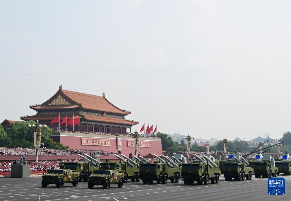 9月3日,紀(jì)念中國人民抗日戰(zhàn)爭暨世界反法西斯戰(zhàn)爭勝利80周年大會在北京隆重舉行。這是遠(yuǎn)程火炮方隊接受檢閱。