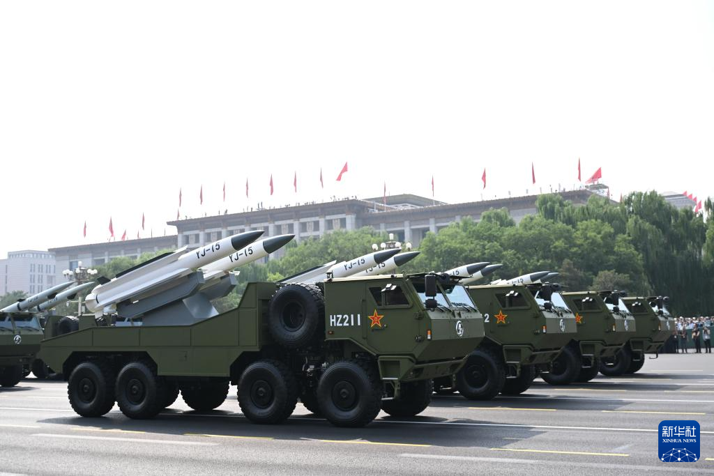 9月3日,紀(jì)念中國人民抗日戰(zhàn)爭暨世界反法西斯戰(zhàn)爭勝利80周年大會在北京隆重舉行。這是反艦導(dǎo)彈方隊接受檢閱。