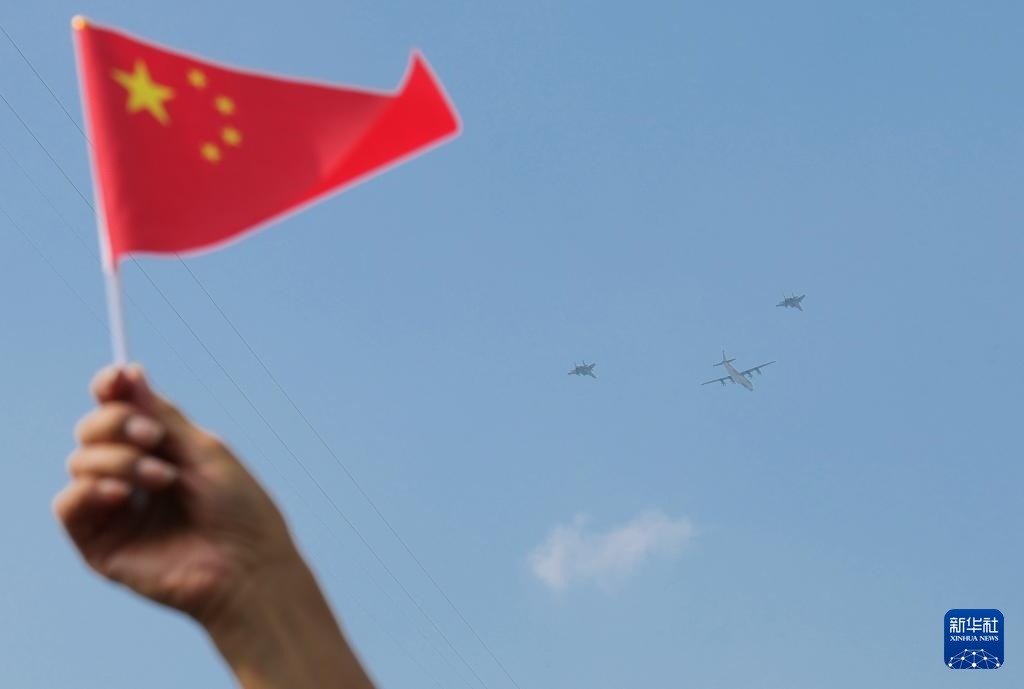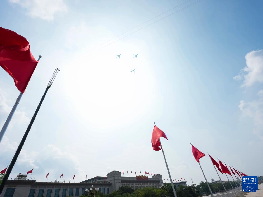 9月3日,紀(jì)念中國(guó)人民抗日戰(zhàn)爭(zhēng)暨世界反法西斯戰(zhàn)爭(zhēng)勝利80周年大會(huì)在北京隆重舉行。這是空中護(hù)旗梯隊(duì)。