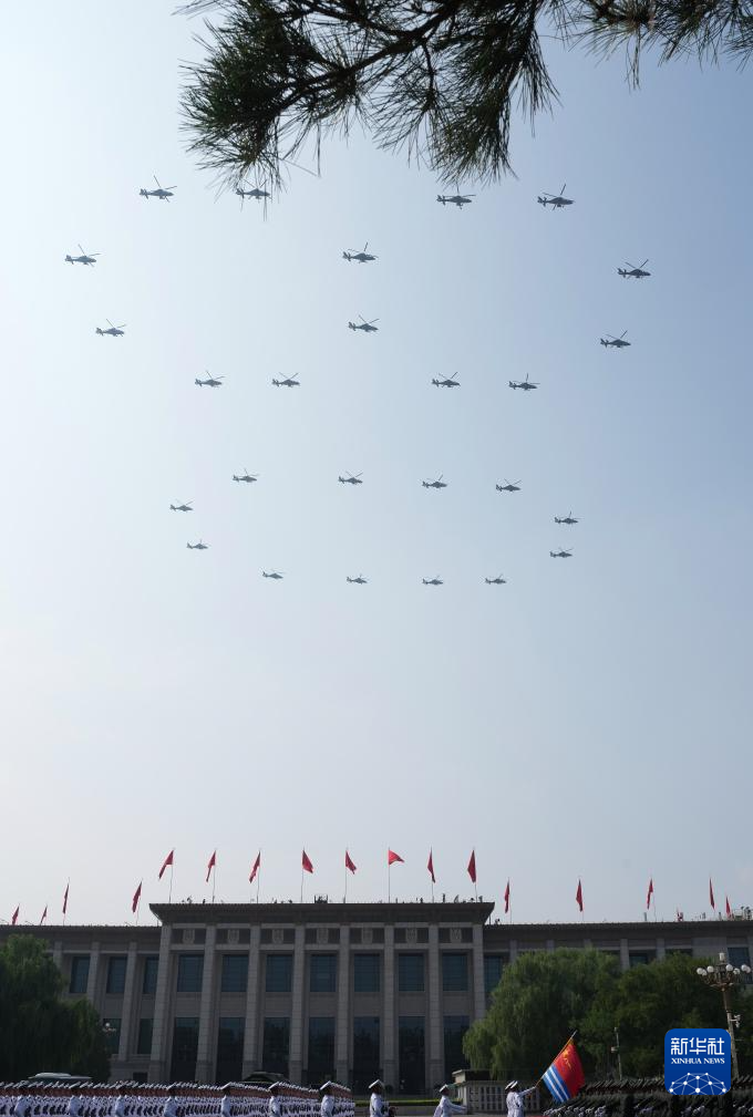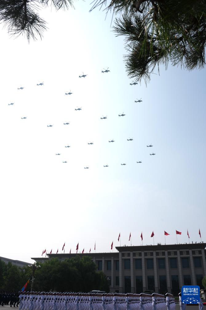 9月3日,紀(jì)念中國(guó)人民抗日戰(zhàn)爭(zhēng)暨世界反法西斯戰(zhàn)爭(zhēng)勝利80周年大會(huì)在北京隆重舉行。這是特種機(jī)梯隊(duì)通過(guò)天安門廣場(chǎng)。