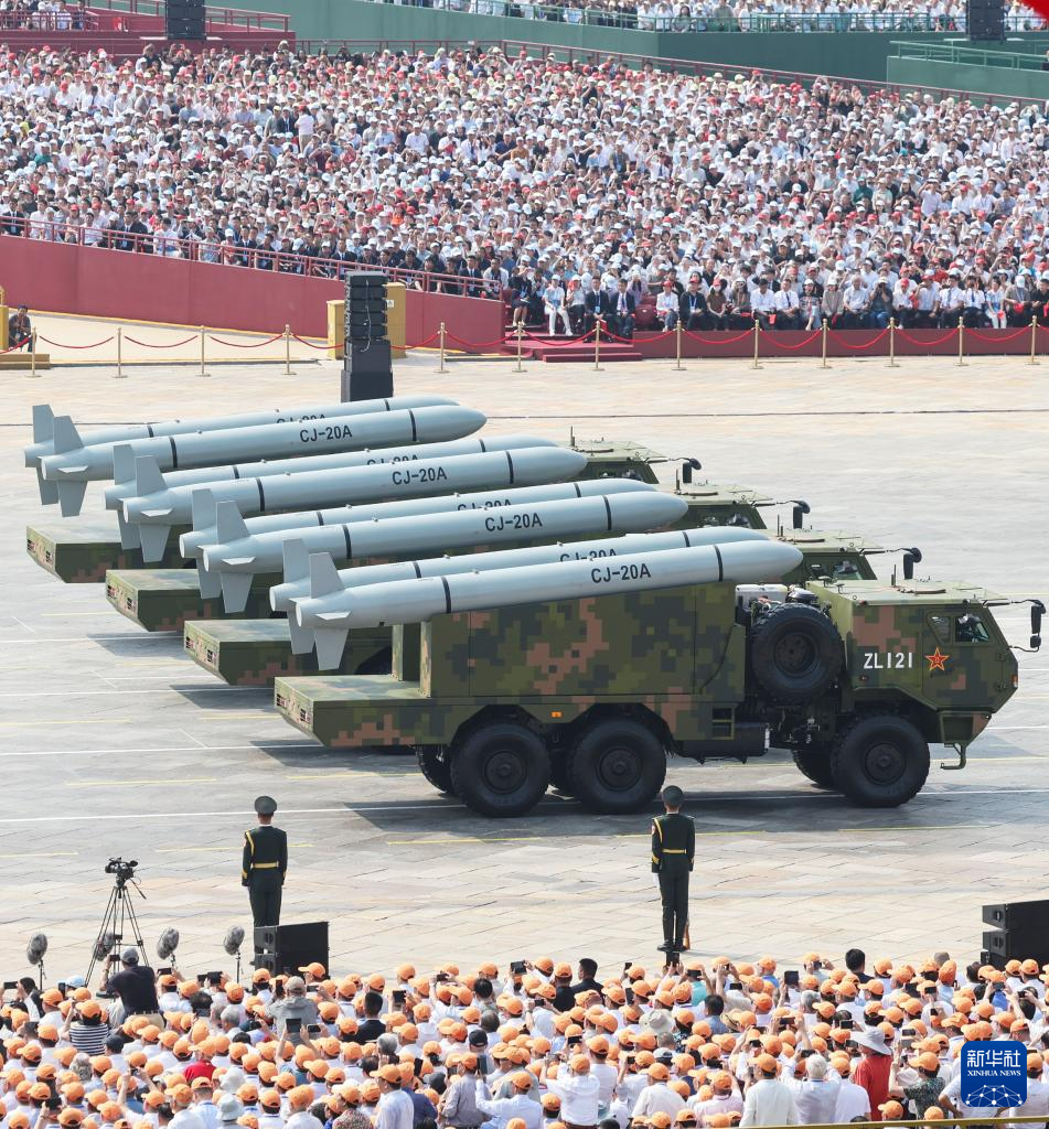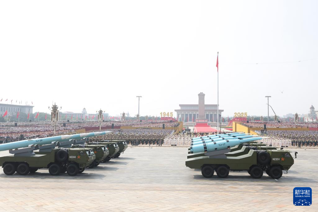 9月3日,紀(jì)念中國(guó)人民抗日戰(zhàn)爭(zhēng)暨世界反法西斯戰(zhàn)爭(zhēng)勝利80周年大會(huì)在北京隆重舉行。這是反艦導(dǎo)彈方隊(duì)接受檢閱。