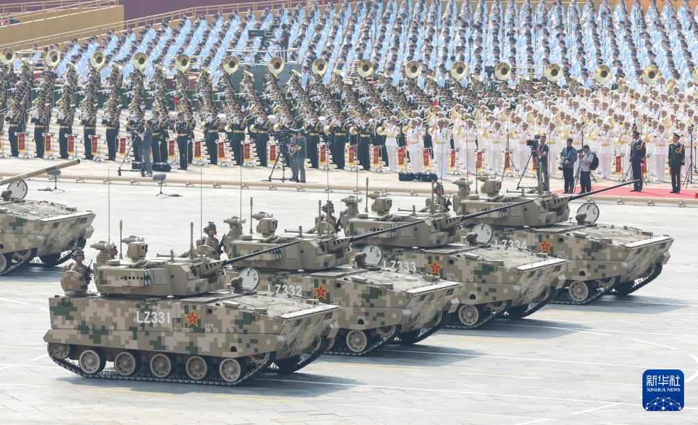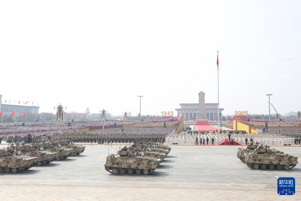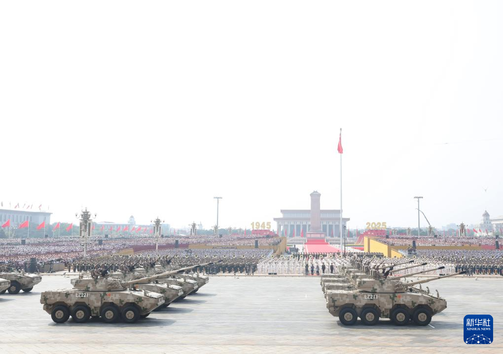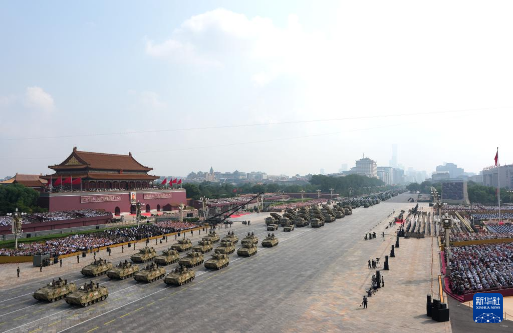 9月3日,紀(jì)念中國(guó)人民抗日戰(zhàn)爭(zhēng)暨世界反法西斯戰(zhàn)爭(zhēng)勝利80周年大會(huì)在北京隆重舉行。這是裝備方隊(duì)接受檢閱。