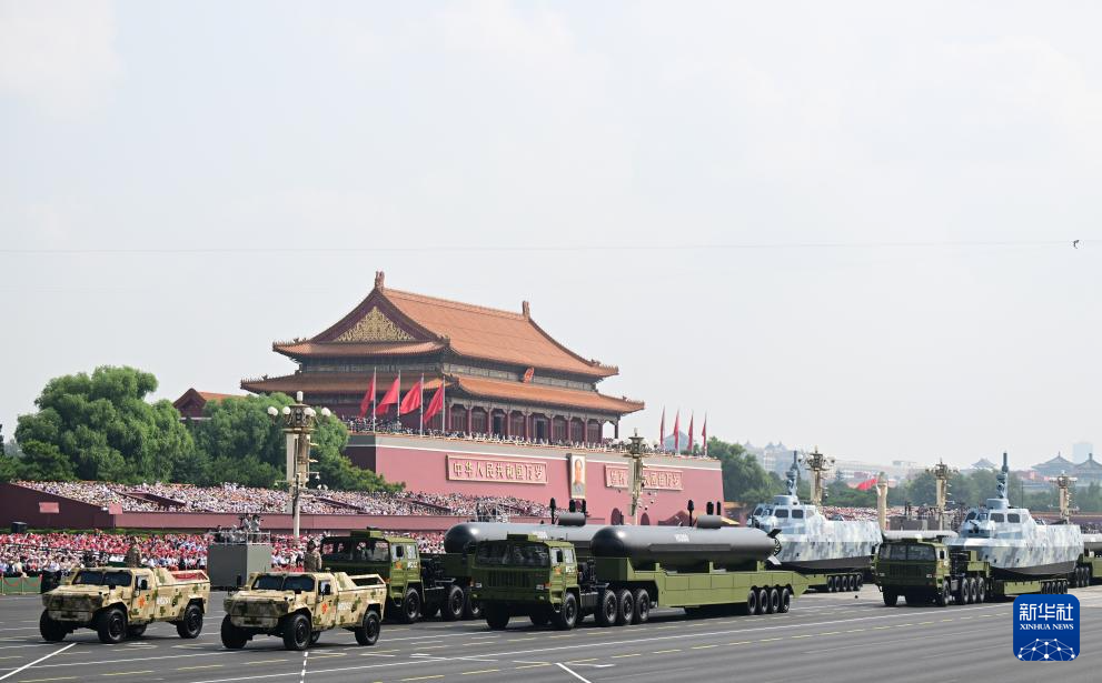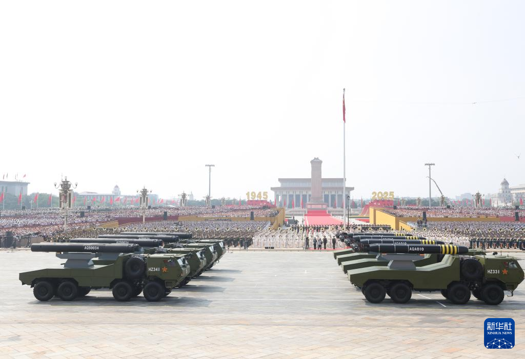 9月3日,紀(jì)念中國(guó)人民抗日戰(zhàn)爭(zhēng)暨世界反法西斯戰(zhàn)爭(zhēng)勝利80周年大會(huì)在北京隆重舉行。這是水下兵器方隊(duì)接受檢閱。