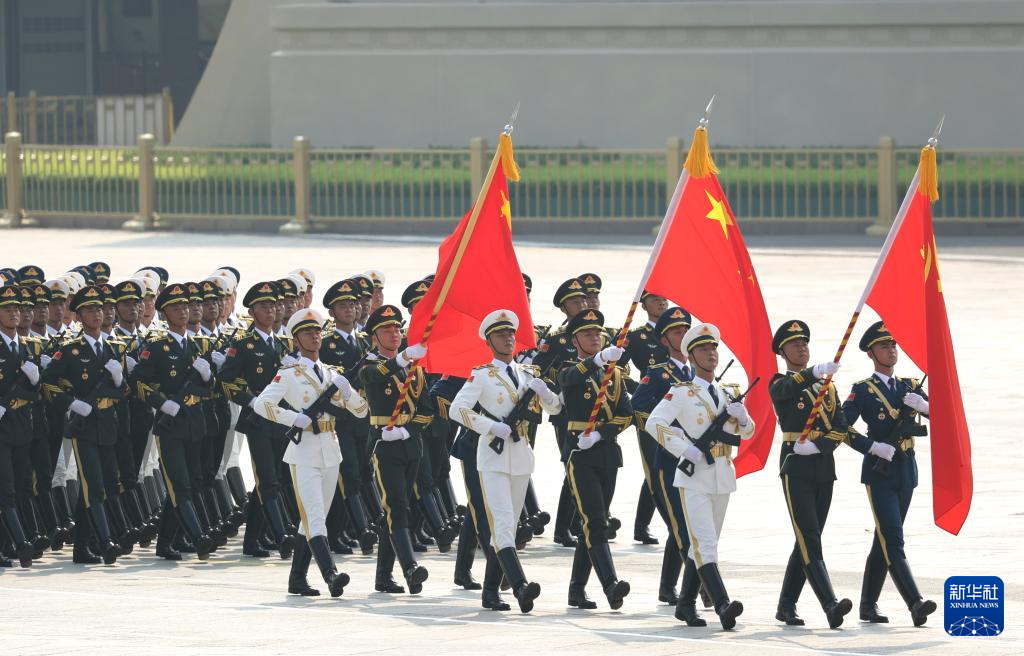9月3日,紀(jì)念中國(guó)人民抗日戰(zhàn)爭(zhēng)暨世界反法西斯戰(zhàn)爭(zhēng)勝利80周年大會(huì)在北京隆重舉行。這是國(guó)旗護(hù)衛(wèi)隊(duì)在天安門廣場(chǎng)列隊(duì)。