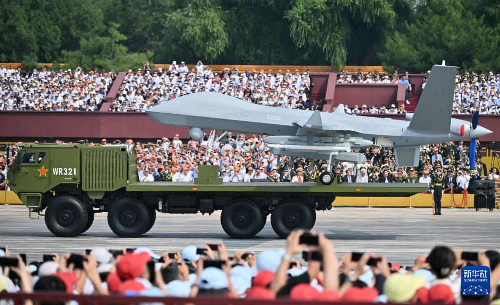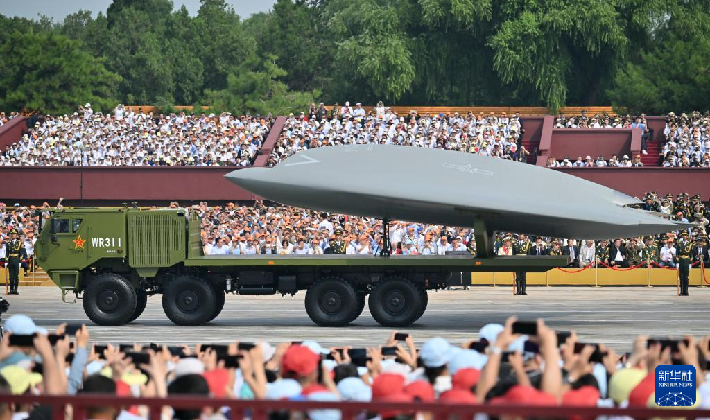 9月3日,紀(jì)念中國(guó)人民抗日戰(zhàn)爭(zhēng)暨世界反法西斯戰(zhàn)爭(zhēng)勝利80周年大會(huì)在北京隆重舉行。這是空中無(wú)人作戰(zhàn)方隊(duì)通過(guò)天安門廣場(chǎng)。
