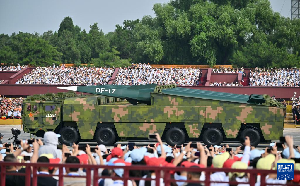 9月3日,紀(jì)念中國(guó)人民抗日戰(zhàn)爭(zhēng)暨世界反法西斯戰(zhàn)爭(zhēng)勝利80周年大會(huì)在北京隆重舉行。這是高超聲速導(dǎo)彈方隊(duì)通過(guò)天安門廣場(chǎng)。