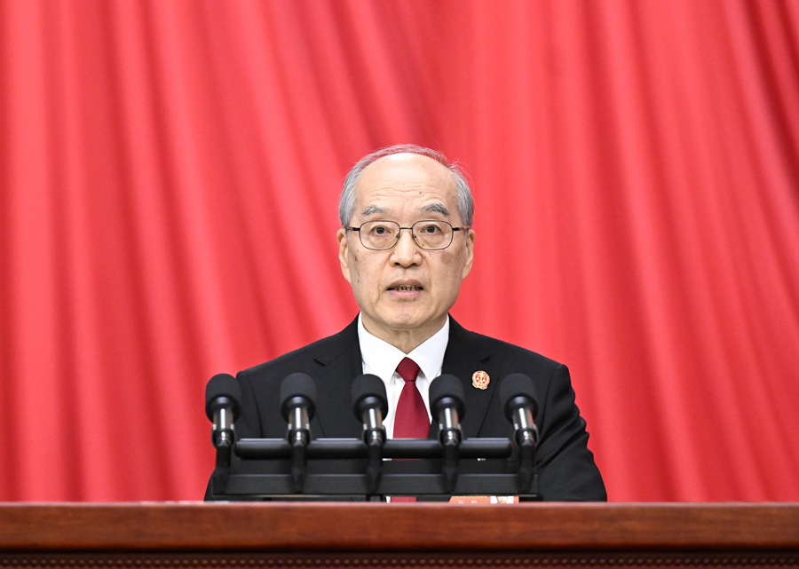 3月8日,十四屆全國人大三次會議在北京人民大會堂舉行第二次全體會議。最高人民法院院長張軍作最高人民法院工作報告。新華社記者 申宏 攝