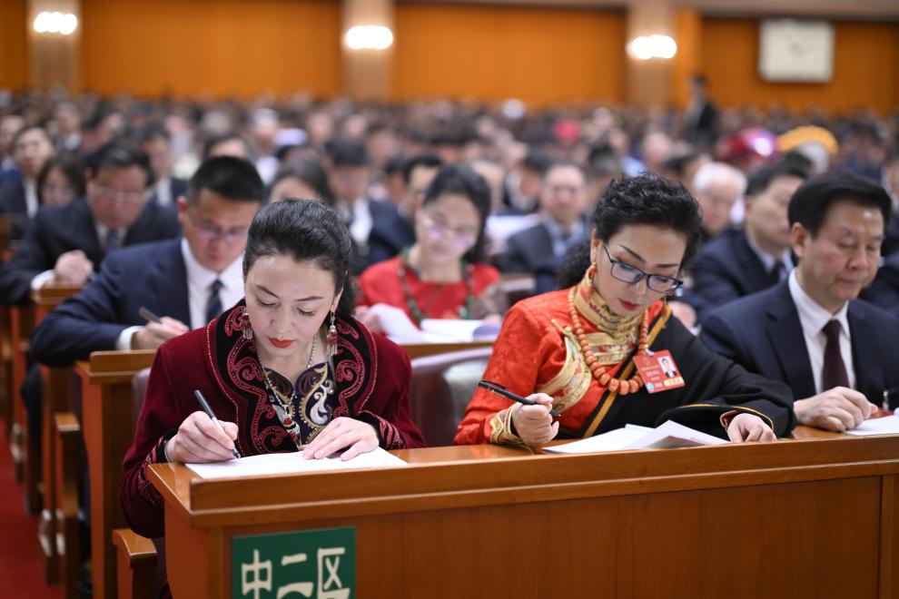 3月8日,十四屆全國人大三次會議在北京人民大會堂舉行第二次全體會議。新華社記者 鄭煥松 攝