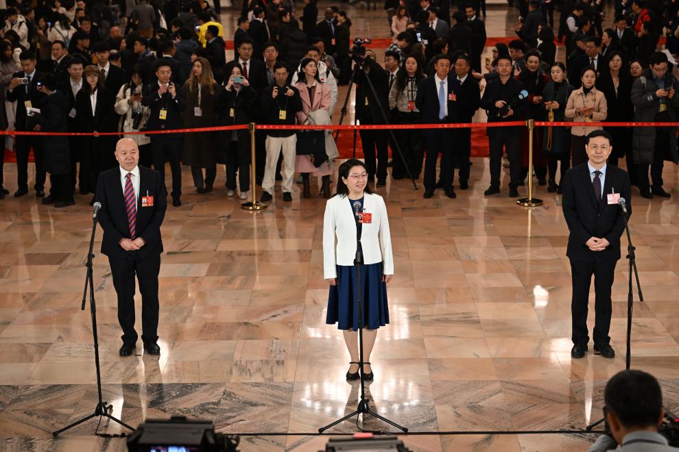 3月4日,全國(guó)政協(xié)十四屆四次會(huì)議首場(chǎng)“委員通道”集體采訪活動(dòng)在北京人民大會(huì)堂舉行。新華社記者 曹祎銘 攝